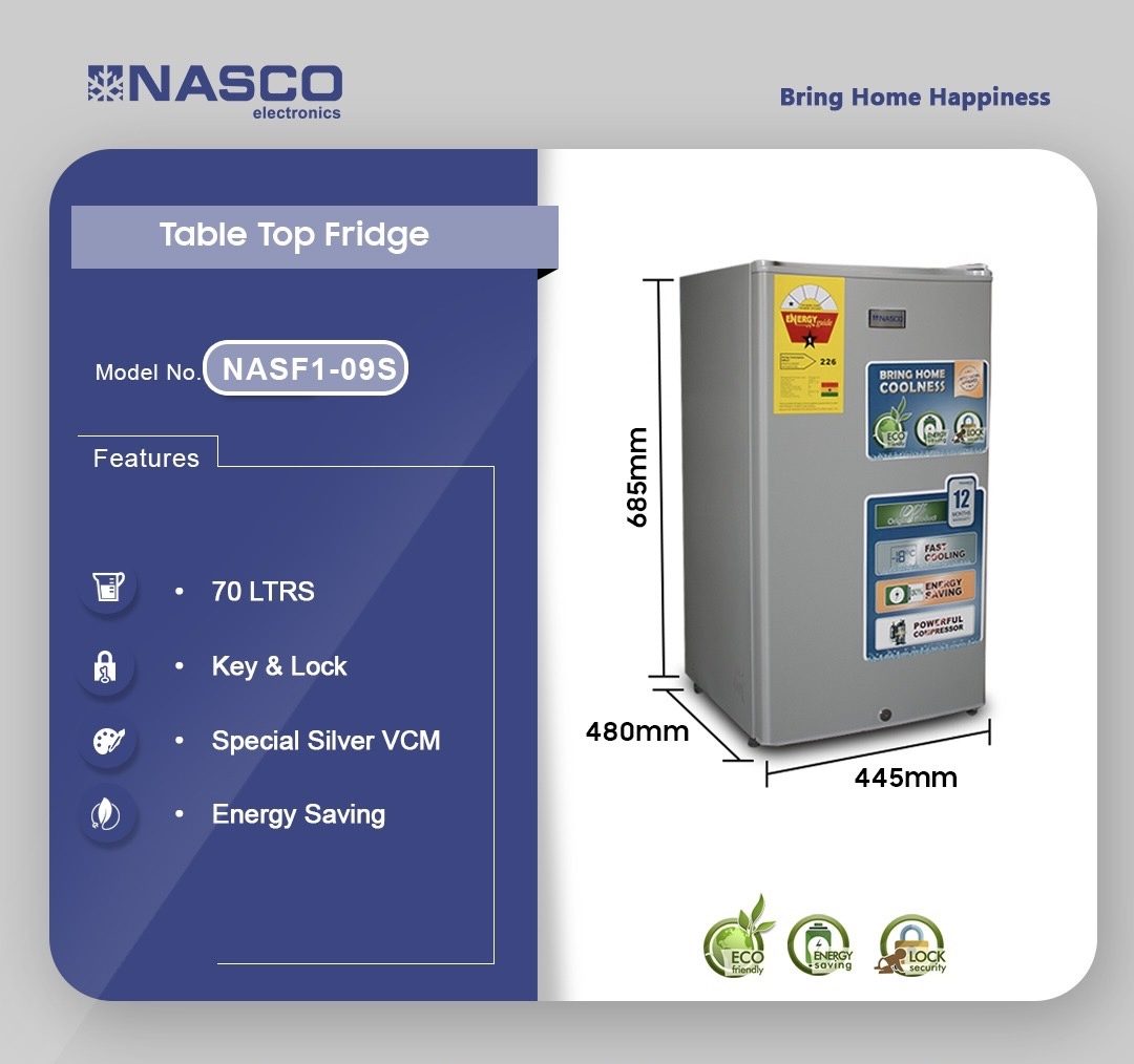 NASCO 70LTR TABLE TOP REFRIGERATOR (NASF1-09S)